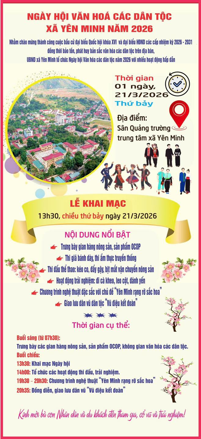 Những ngày này, không khí hướng về ngày bầu cử đại biểu Quốc hội và đại biểu HĐND các cấp nhiệm kỳ 2026 – 2031 trên địa bàn xã Yên Minh diễn ra sôi nổi, phấn khởi. Từ trung tâm xã đến các thôn, cờ Tổ quốc, băng rôn, khẩu hiệu tuyên truyền được treo trang trọng trên các tuyến đường, tạo nên khí thế rộn ràng chào đón ngày hội lớn của toàn dân.