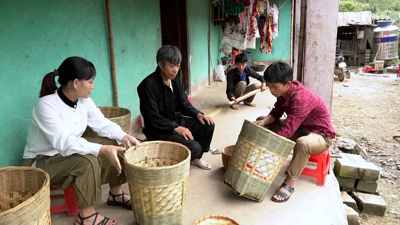 Không dừng lại ở đó, anh Vư nhận thấy những năm gần đây, ngành Du lịch tại vùng cao đang phát triển, du khách đến ngày một đông, trong đó có nhiều người yêu thích các sản phẩm đan lát truyền thống. Chính vì thế mà anh đã tập hợp những người có tay nghề và yêu thích nghề đan lát trong thôn để thành lập Làng nghề đan quẩy tấu của thôn, ban đầu chỉ có 12 người tham gia, hiện nay đã phát triển được trên 20 người với mong muốn tạo ra nhiều sản phẩm hơn, có mẫu mã đẹp hơn để làm quà lưu niệm phục vụ du lịch. Hiện nay, sản phẩm đan lát của làng nghề làm ra đến đâu được tiêu thụ hết đến đó, có lúc còn không đủ bán, các sản phẩm có nhiều mẫu mã, kích thước khác nhau như quẩy tấu, rổ, giá, sọt, mẹt, làn, giỏ… và những sản phẩm đặt làm theo yêu cầu, giá giao động từ 60.000đ đến 200.000đ tùy từng loại. Nếu làm thường xuyên thì thu nhập của mỗi người cũng được khoảng từ 5 đến 7 triệu đồng/ tháng.