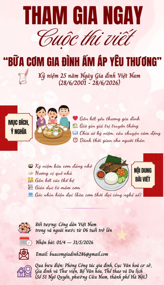 20 °C Cuộc thi viết: "Bữa cơm gia đình ấm áp yêu thương" hưởng ứng kỷ niệm 25 năm ngày Gia đình Việt Nam
