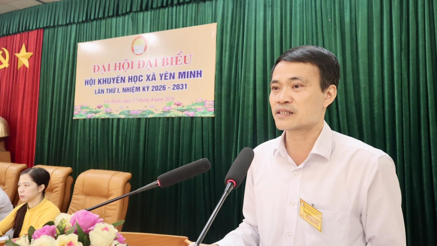 Với tinh thần đoàn kết, trách nhiệm, Đại hội Hội Khuyến học xã Yên Minh lần thứ I, nhiệm kỳ 2026–2031 đã bầu Ban Chấp hành Hội gồm 20 đồng chí; bầu Ban Thường vụ, Ủy ban Kiểm tra; bầu Chủ tịch, Phó Chủ tịch Hội. Đồng chí Phạm Công Hậu được tín nhiệm bầu giữ chức Chủ tịch Hội Khuyến học xã nhiệm kỳ 2026–2031.