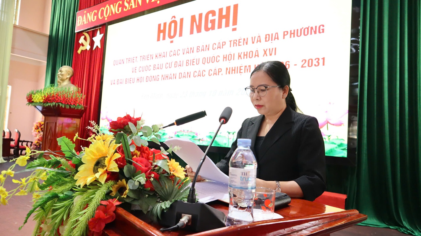 Tại Hội nghị, đồng chí Nguyễn Thị Hiên – Phó Bí thư Thường trực Đảng uỷ đã quán triệt Chỉ thị số 46-CT/TW, ngày 16/5/2025 của Bộ Chính trị về lãnh đạo cuộc bầu cử đại biểu Quốc hội khóa XVI và đại biểu HĐND các cấp, nhiệm kỳ 2026 – 2031.