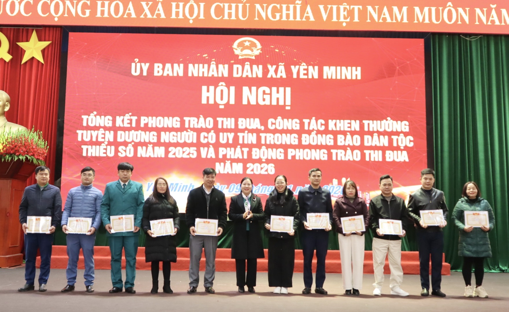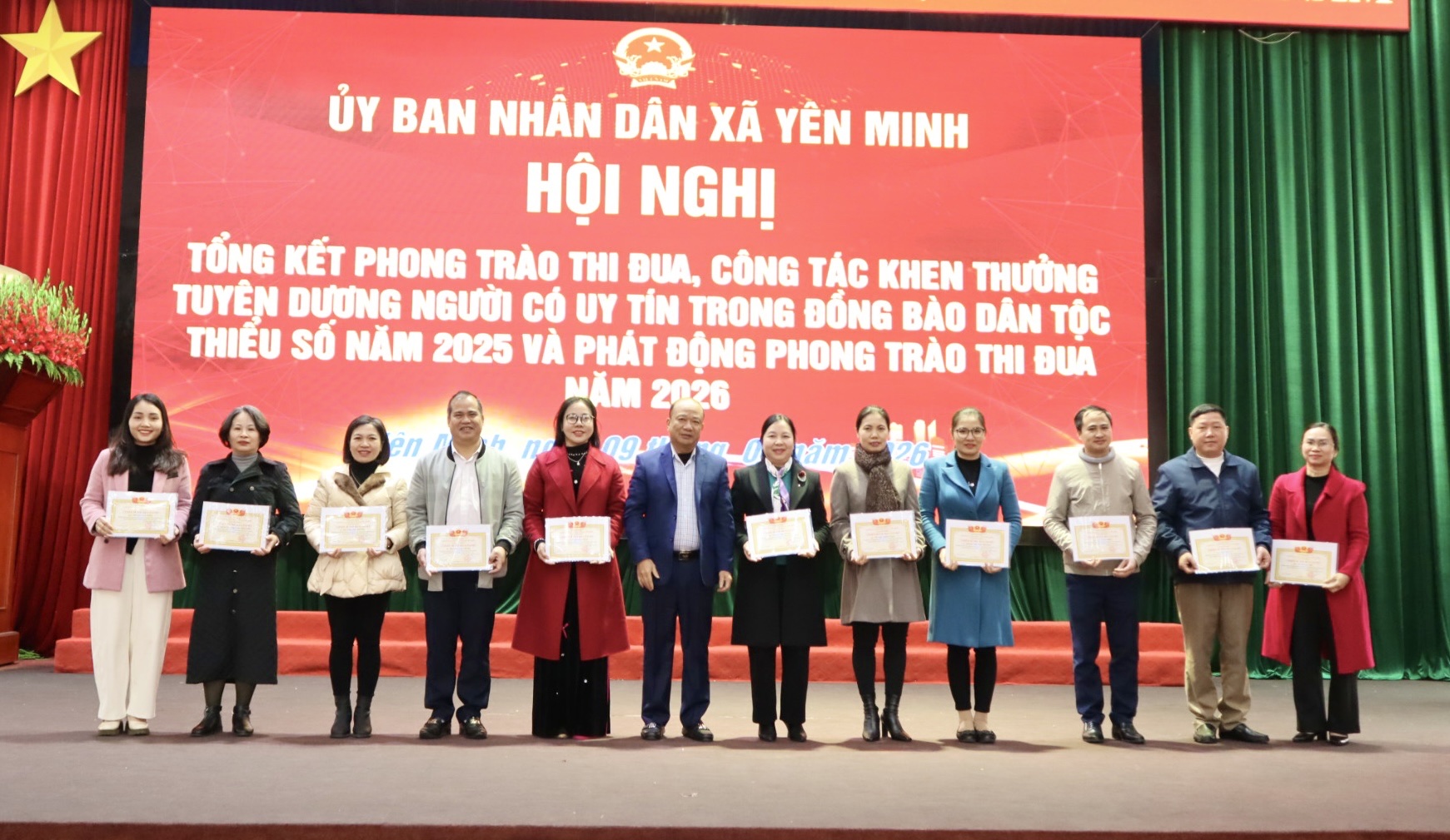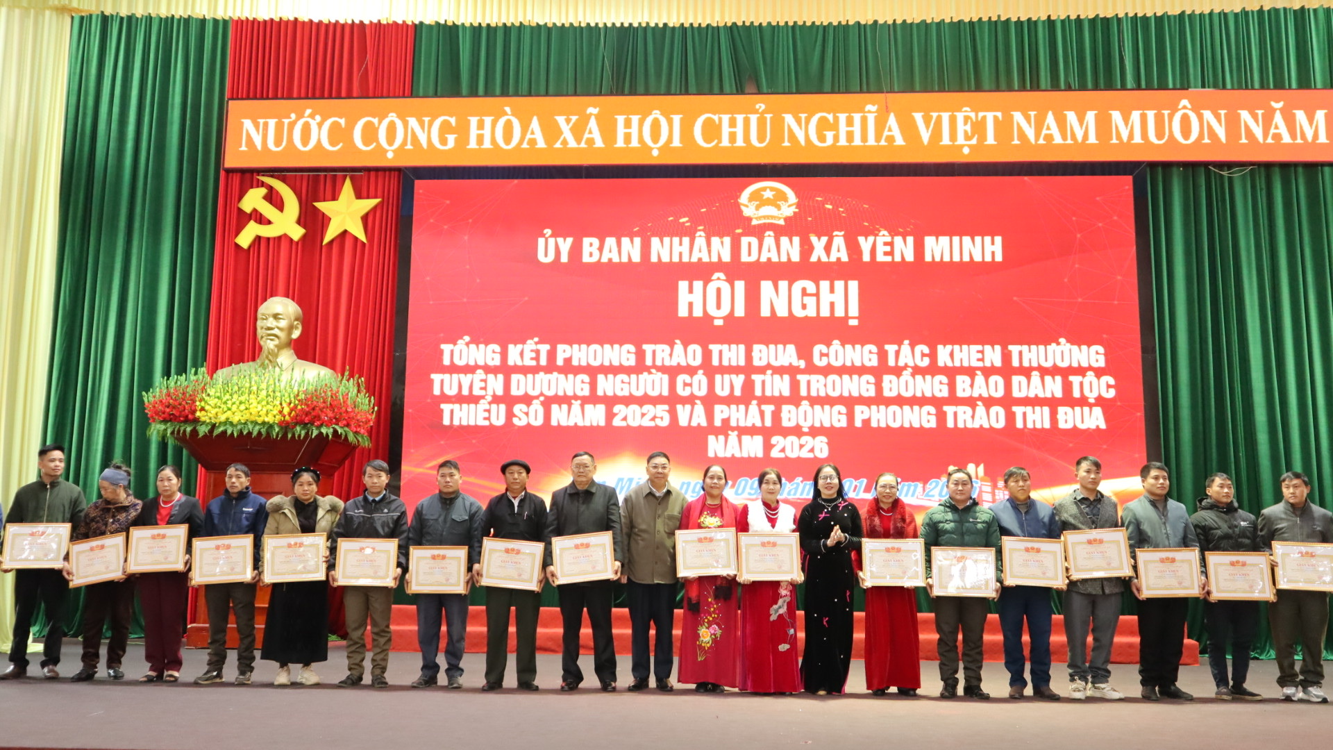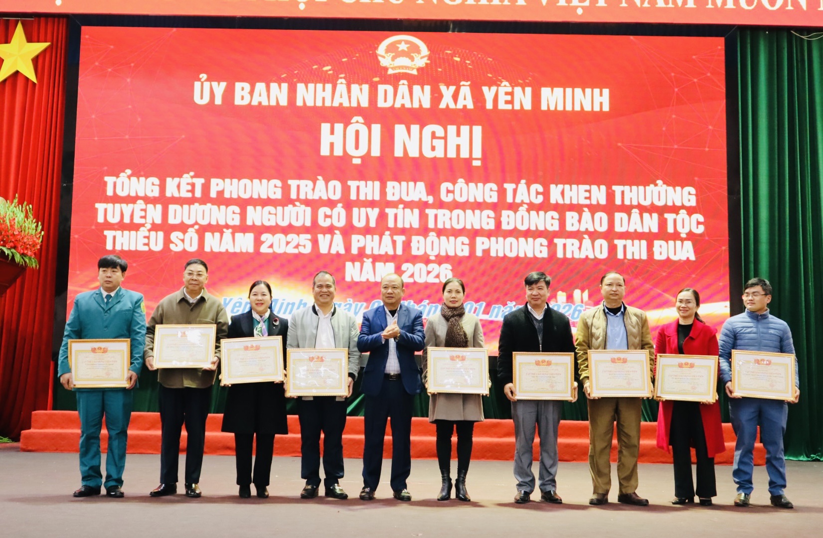 Nhân dịp này, UBND xã đã tổ chức khen thưởng, tặng quà cho các tập thể, cá nhân tiêu biểu và Người có uy tín; phát động phong trào thi đua năm 2026, tạo khí thế thi đua sôi nổi, góp phần thực hiện thắng lợi các mục tiêu, nhiệm vụ của địa phương trong năm tới.