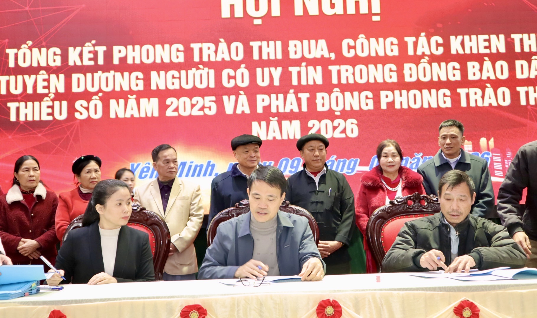 Tại hội nghị, các đại biểu được nghe báo cáo tổng kết công tác thi đua, khen thưởng năm 2025, phương hướng, nhiệm vụ năm 2026; tổng kết hoạt động của Người có uy tín trong đồng bào dân tộc thiểu số năm 2025, phương hướng nhiệm vụ năm 2026. Đồng thời, dành thời gian thảo luận, chia sẻ nhiều giải pháp thiết thực gắn với nhiệm vụ phát triển kinh tế – xã hội, xây dựng nông thôn mới, giữ gìn bản sắc văn hóa và đảm bảo an ninh trật tự tại cơ sở.