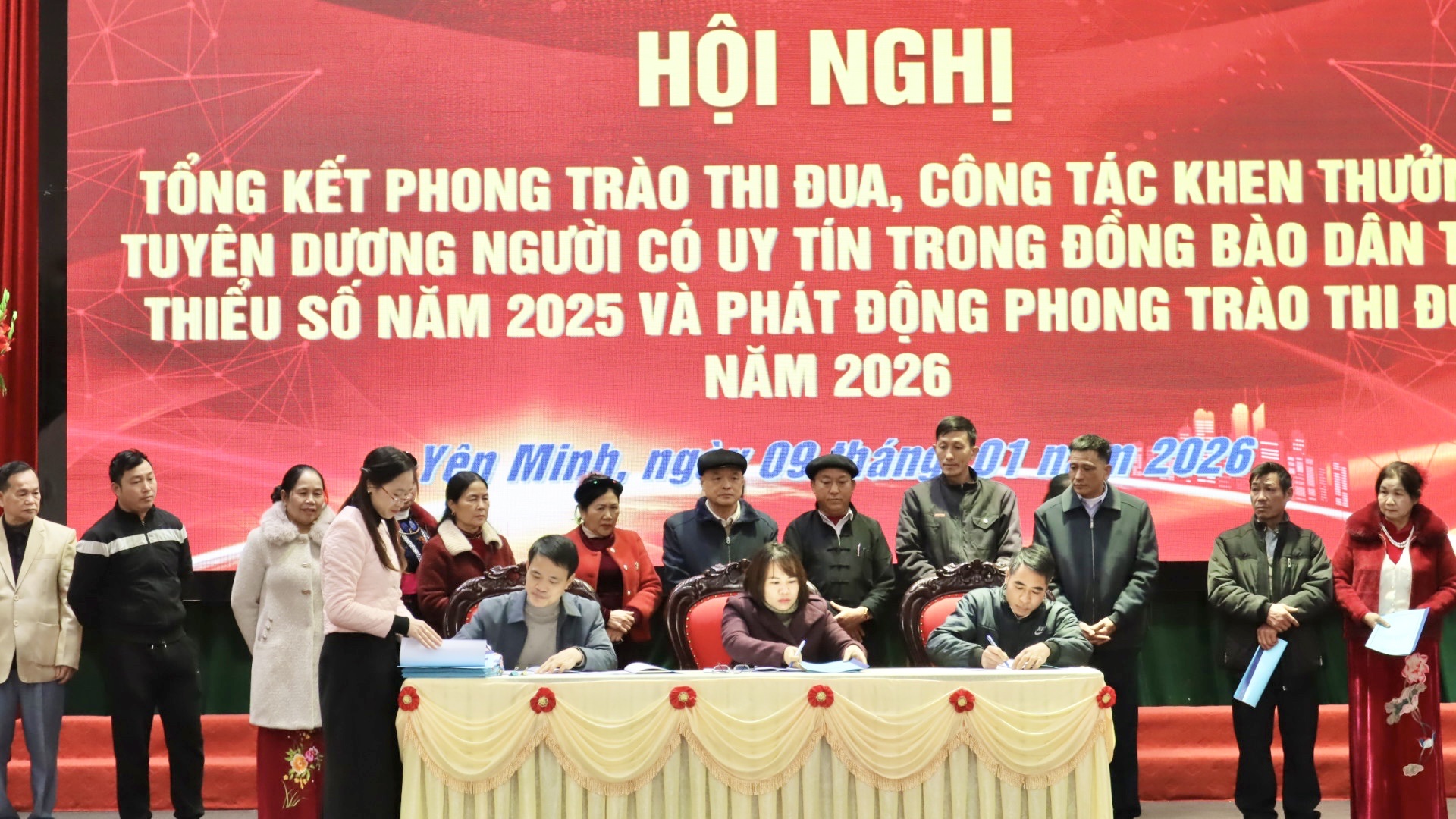 Ngay sau lễ phát động phong trào thi đua năm 2026, Chủ tịch UBND xã và đại diện các cơ quan, đơn vị, các thôn trên địa bàn xã đã tiến hành ký kết giao ước thi đua năm 2026, thể hiện quyết tâm thực hiện thắng lợi các chỉ tiêu, nhiệm vụ phát triển kinh tế – xã hội của địa phương trong năm tới.