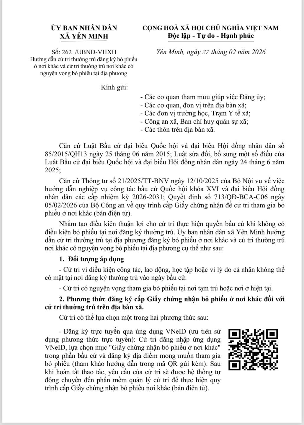 Hướng dẫn cử tri thường trú đăng kí bỏ phiếu ở nơi khác và cử tri thường trú nơi khác có nguyện vọng bỏ phiếu tại địa phương