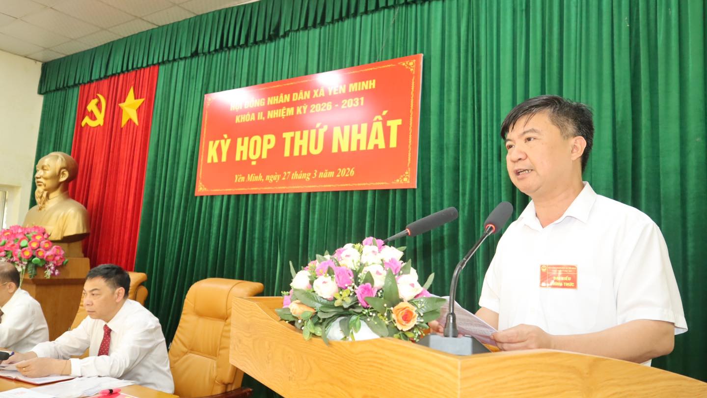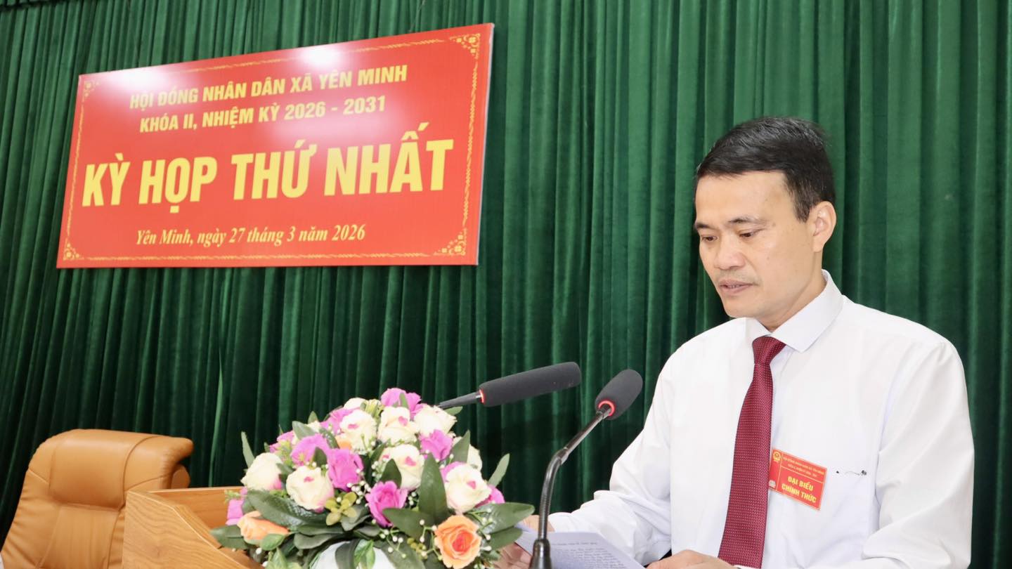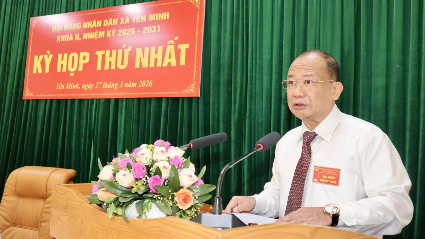 Phát biểu bế mạc kỳ họp, đồng chí Hoàng Cừ – Bí thư Đảng ủy, Chủ tịch HĐND xã Yên Minh khóa II, nhiệm kỳ 2026 – 2031 nhấn mạnh: Kỳ họp thứ Nhất HĐND xã khóa II đã hoàn thành toàn bộ nội dung, chương trình đề ra. Đồng chí đề nghị các đại biểu HĐND xã tiếp tục phát huy tinh thần trách nhiệm, đoàn kết, nêu cao vai trò của người đại biểu dân cử; khẩn trương triển khai thực hiện hiệu quả các nghị quyết đã được thông qua tại kỳ họp, góp phần nâng cao hiệu lực, hiệu quả hoạt động của HĐND và UBND xã, thực hiện thắng lợi các nhiệm vụ phát triển kinh tế – xã hội, bảo đảm quốc phòng – an ninh và nâng cao đời sống Nhân dân trên địa bàn trong nhiệm kỳ mới.