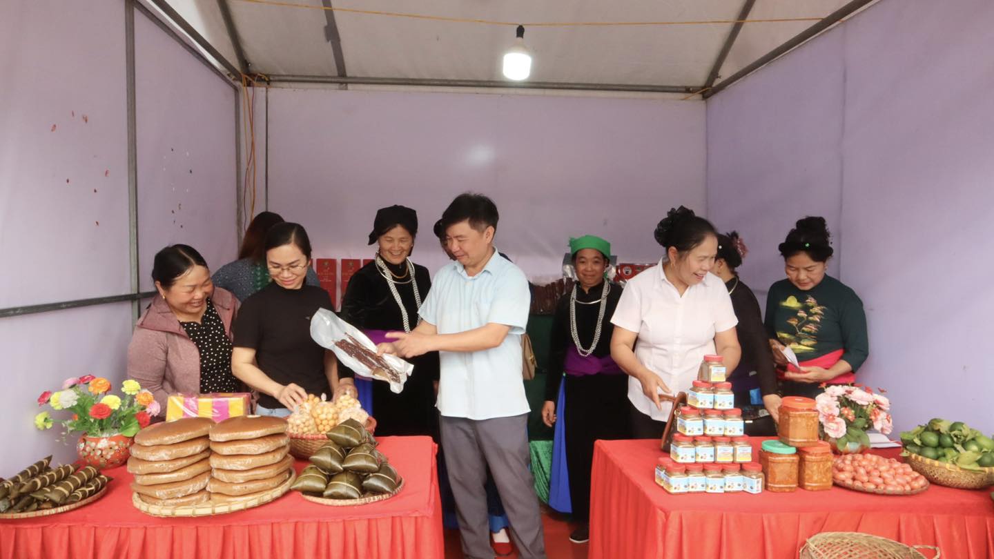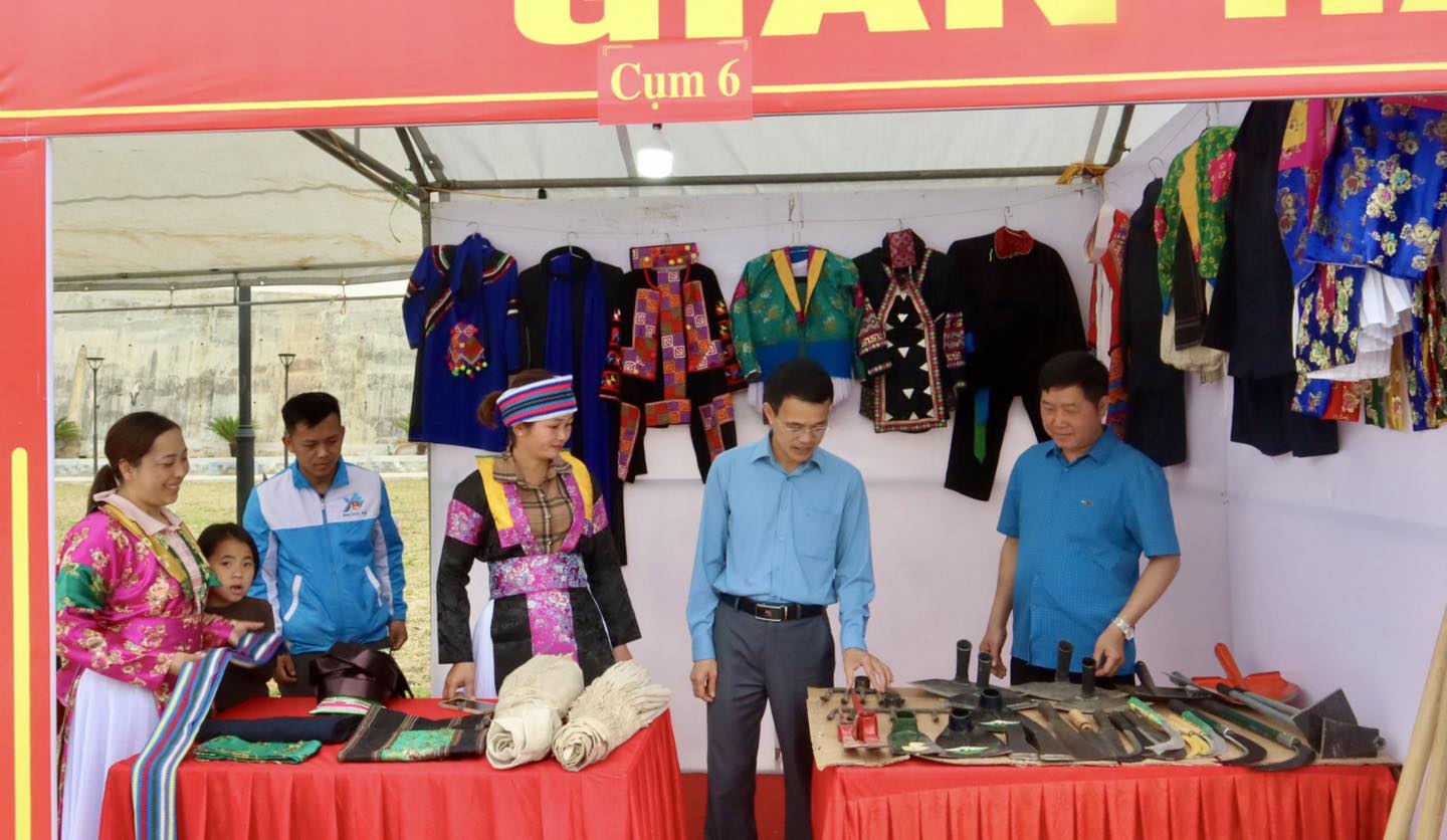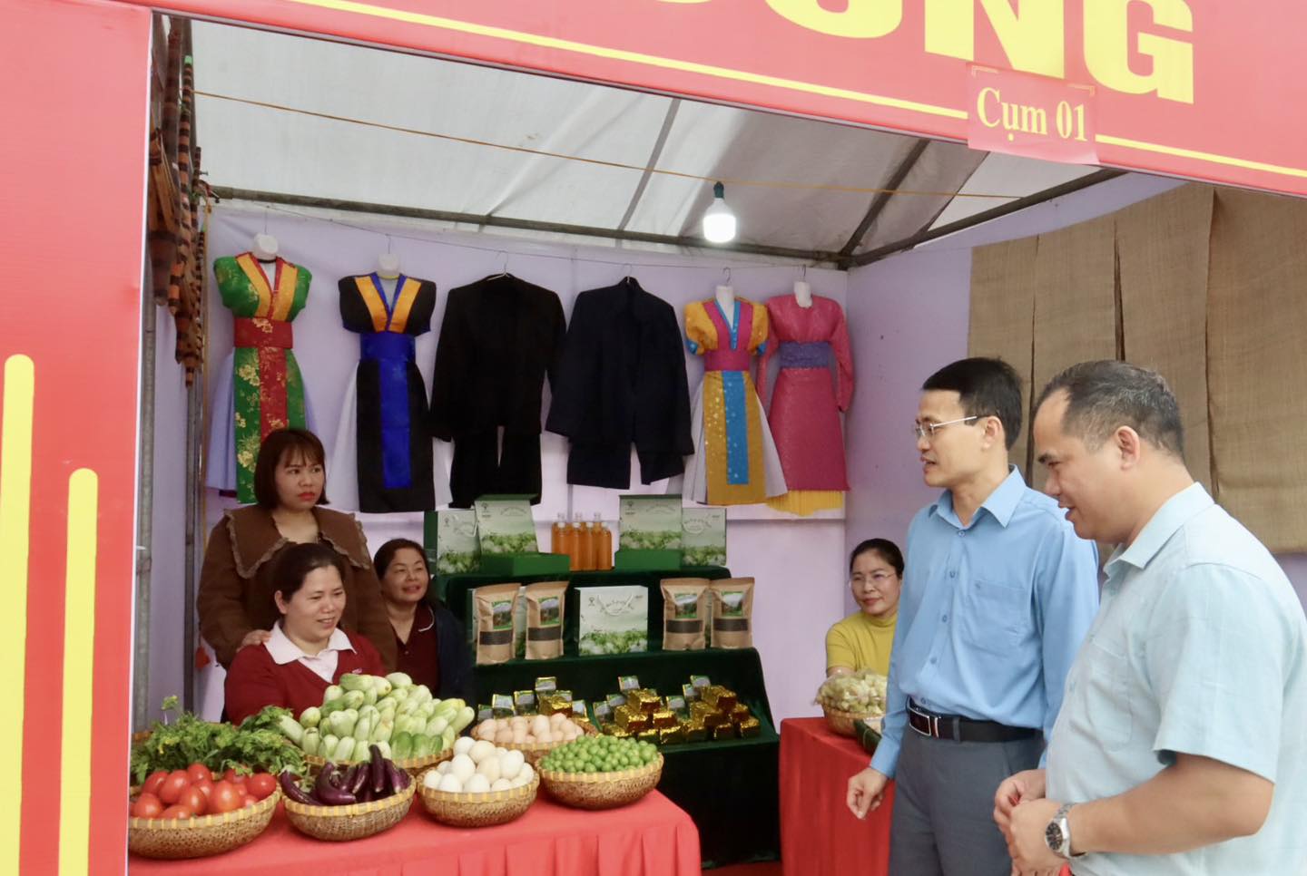 Ngay từ sáng sớm, các cụm thôn và hội, đoàn thể đã tổ chức trưng bày các gian hàng giới thiệu sản phẩm OCOP, nông sản đặc trưng của địa phương, cùng các nhạc cụ, trang phục truyền thống và dụng cụ lao động sản xuất của đồng bào các dân tộc. Các gian hàng được bố trí khoa học, tạo không gian trưng bày sinh động, góp phần quảng bá nét đẹp văn hóa truyền thống và giới thiệu các sản phẩm đặc trưng của địa phương đến với nhân dân và du khách.
