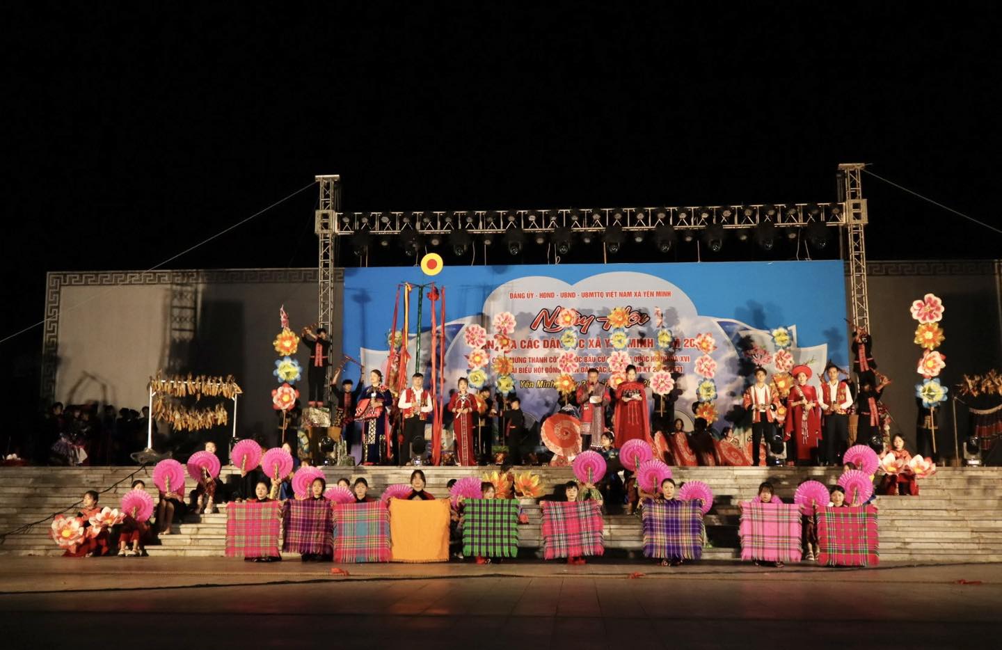 Buổi tối cùng ngày diễn ra chương trình nghệ thuật với chủ đề “Yên Minh rạng rỡ sắc hoa”, cùng hoạt động đồng diễn, giao lưu dân vũ dân tộc “Vũ điệu kết đoàn” với sự tham gia biểu diễn của các câu lạc bộ văn nghệ, các đơn vị trường học và đội văn nghệ quần chúng trên địa bàn xã. Nhân dịp này, Ban Tổ chức cũng tiến hành trao giải cho các đội tham gia các nội dung thi tại ngày hội.