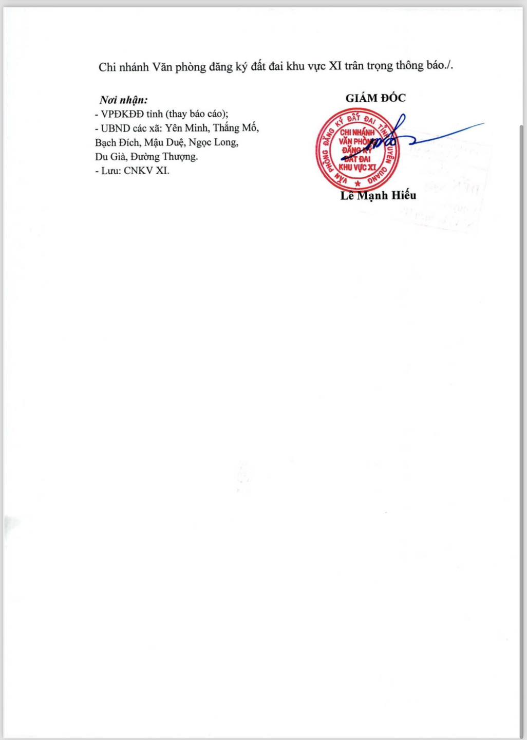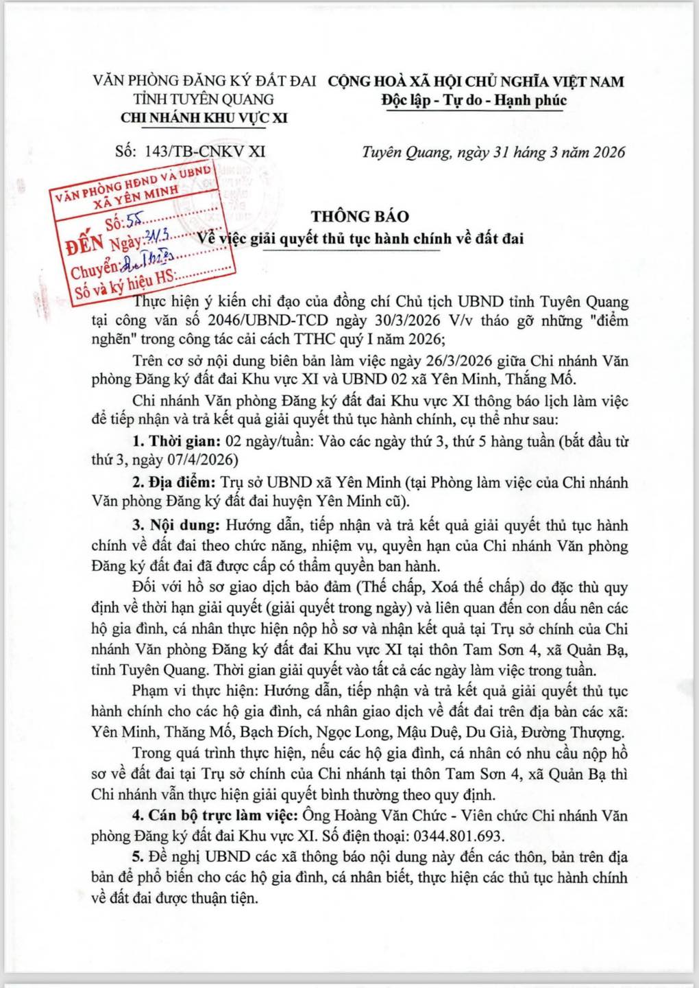 THÔNG BÁO VỀ VIỆC GIẢI QUYẾT THỦ TỤC HÀNH CHÍNH VỀ ĐẤT ĐAI