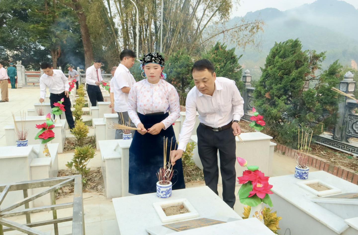 Trong không khí trang nghiêm, các đại biểu đã đặt vòng hoa, dâng hương và dành phút mặc niệm tưởng nhớ, tri ân công lao to lớn của các anh hùng liệt sĩ và lực lượng thanh niên xung phong đã anh dũng hy sinh vì sự nghiệp đấu tranh giải phóng dân tộc, bảo vệ Tổ quốc.